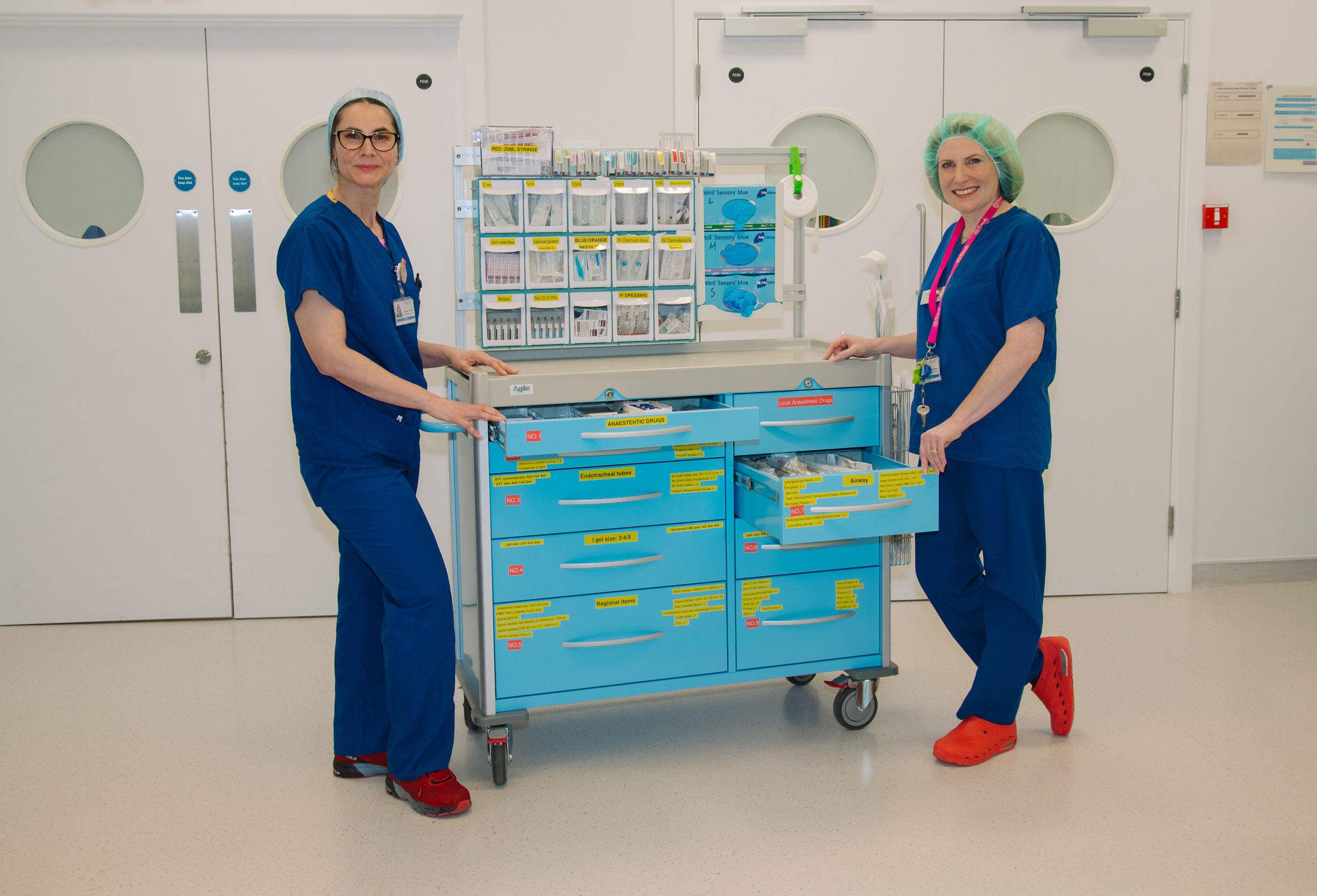 The trolley allows the anaesthetic team to prepare and organise equipment more efficiently, reducing anaesthetic time and supporting smoother running procedures.